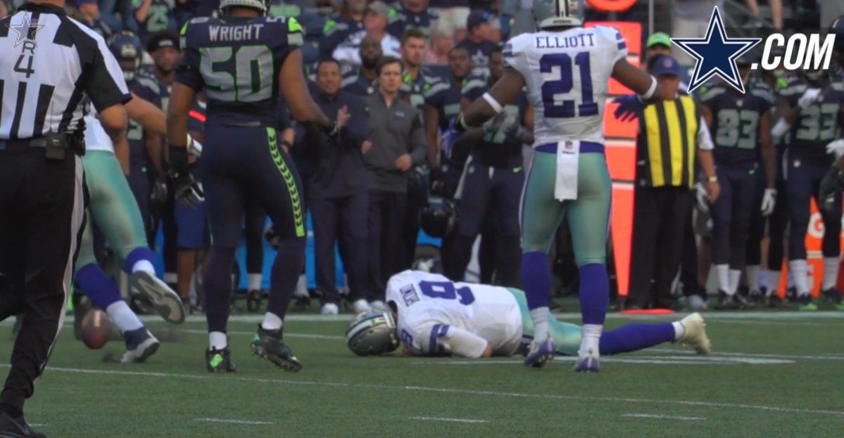 Así fue la aparente lesión de Tony Romo después de ser tackleado ????#DALvsSEA https://t.co/lnh56zp4is