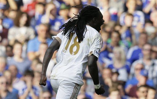 Gomis logró rescatar el empate para el Swansea tras una maniobra individual que lo dejó mano a mano con Courtois, quien no tuvo más remedio que derribarlo dentro del área. Asmir Begovic ingresó a defender el arco, pero nada pudo hacer ante el disparo de Gomis, a los 55.