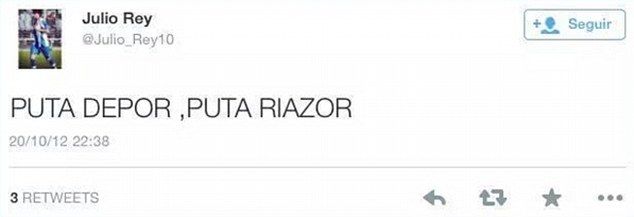 Resulta que en 2012, Rey publicó: Puta Depor, Puta Riazor. Por entonces, jamás pensó que ese equipo se interesaría en sus servicios y menos aún que ese mensaje le arruinaría la oportunidad de llegar a primera división.