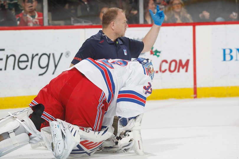 Antti Raanta, portero de los Rangers de Nueva York sufrió una lesión durante el primer periodo del partido ante el Minnesota Wild disputado en el Xcel Energy Center de Saint Paul, Minnesota, en duelo de la NHL.