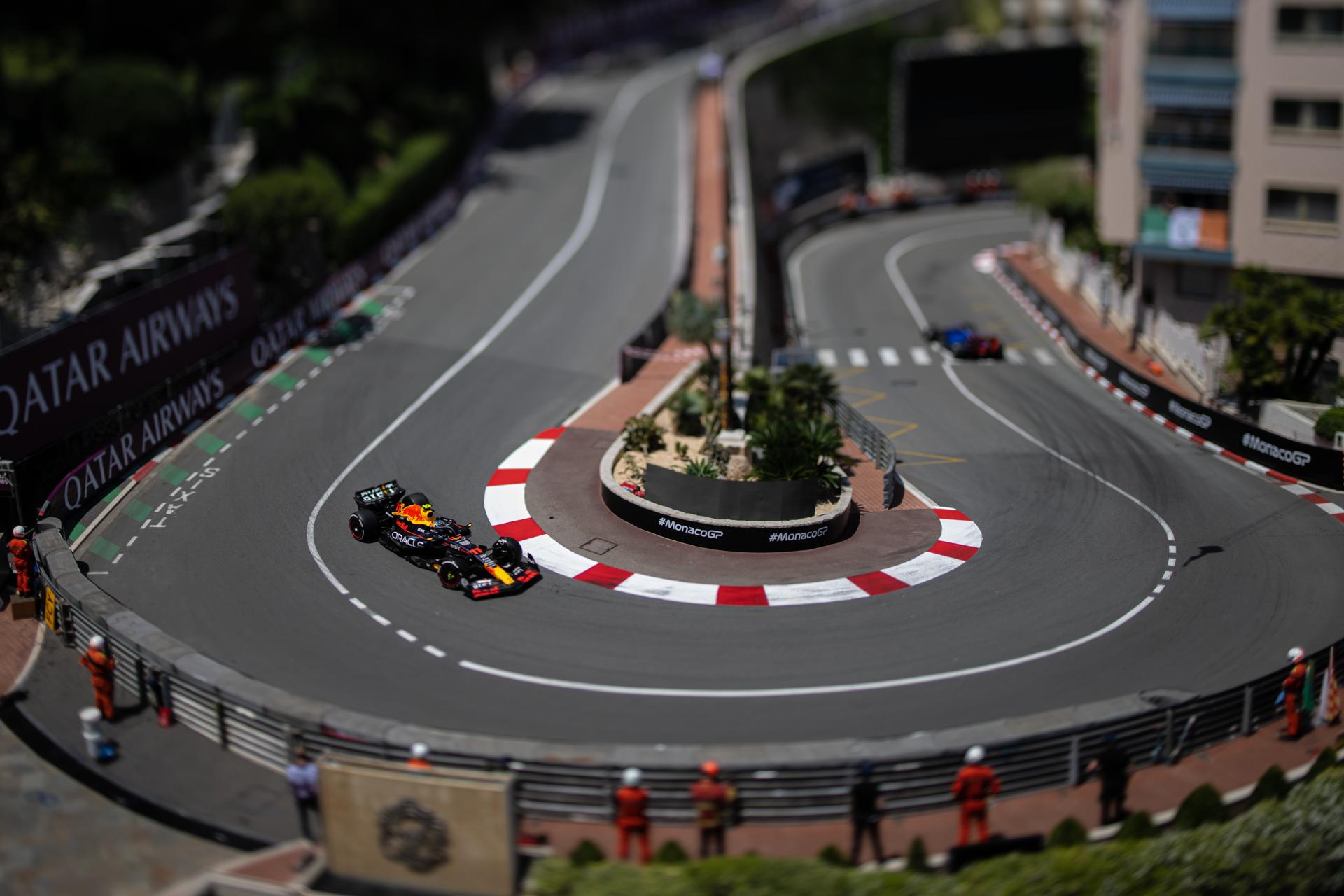 El piloto mexicano Sergio Pérez (Red Bull) cubrió los 3 mil 337 metros de la pista Mónaco con un tiempo de 1:12.991