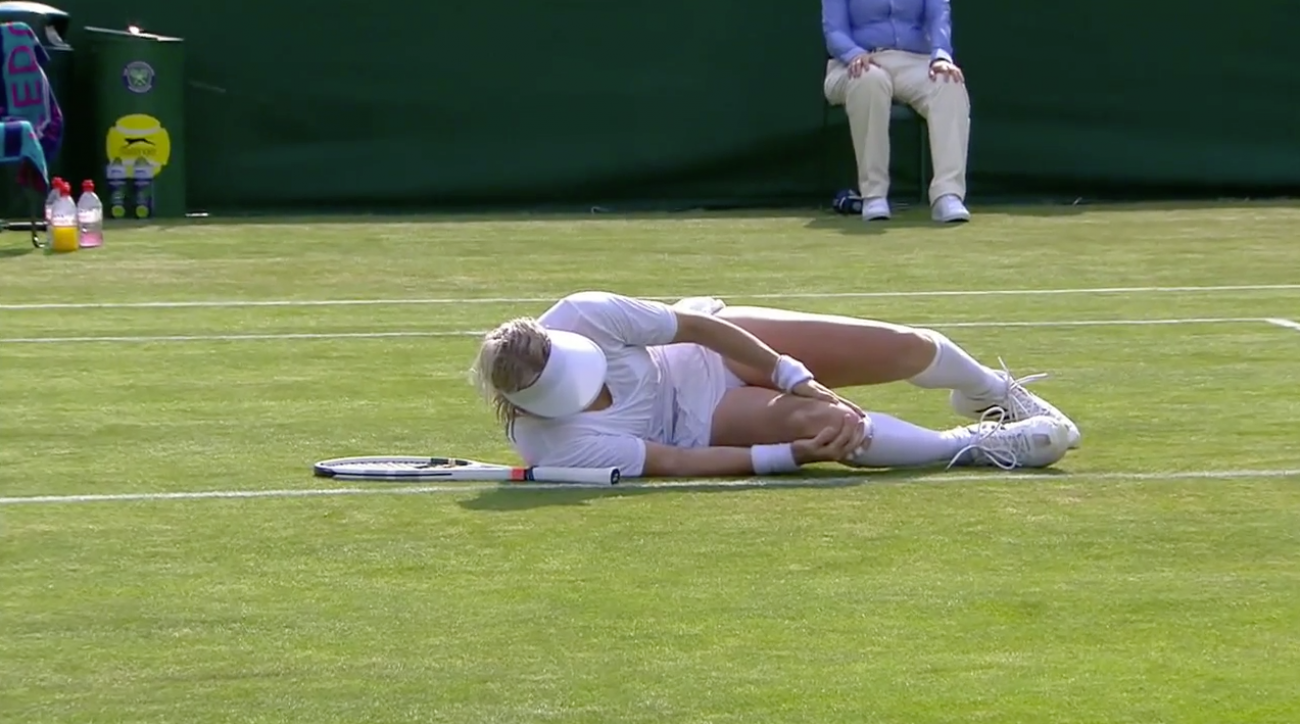 Bethanie Mattek-Sands, una estadounidense de 32 años que llegó a Wimbledon en busca de su cuarto título consecutivo de Grand Slam en dobles, cayó el jueves al césped cuando se le trabó la rodilla derecha mientras atacaba la red durante su partido de singles de segunda ronda.