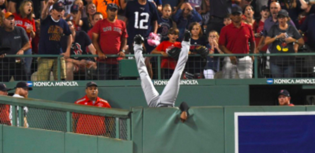 Jackson dio una vuelta de campana por encima del muro y cayó en el bullpen de los Medias Rojas. De algún modo se aferró a la pelota con el guante, mientras trataba de controlar su caída con la mano derecha colocada en la cerca.