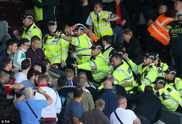 Después de algunos minutos de combate, los aficionados de Hannover fueron desalojados del estadio y escoltados por las calles de Burnley hasta la estación de tren.