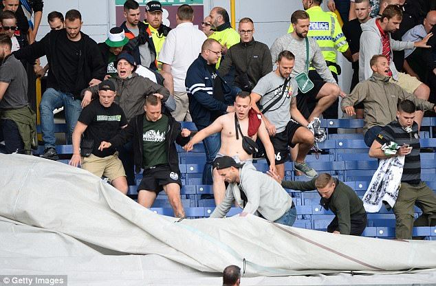 Fue en el primer tiempo del encuentro cuando los ingleses ganaban uno a cero, y los aficionados alemanes arrancaron asientos una de las tribunas del estadio Turf Moor y los arrojaron hacia un sector donde había público local.