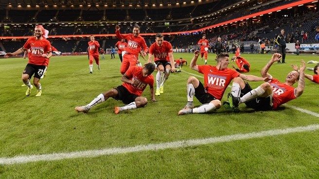 Jugadores austriacos celebran la clasificación a la Euro.Foto de UEFA