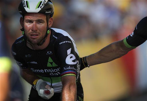 Dos ciclistas que marchaban detrás de Cavendish, ganador de 30 etapas del Tour, le pasaron por encima y cayeron también de forma aparatosa