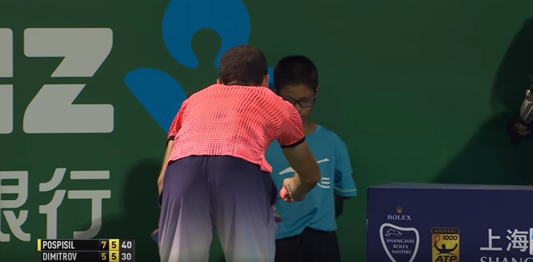 El tenista búlgaro Grigor Dimitrov detuvo un momento su partido contra Vasek Pospisil, luego de que un saque del canadiense, que viajaba a más de 200 kilómetros por hora, golpeara a un niño en el pecho, haciéndolo llorar.