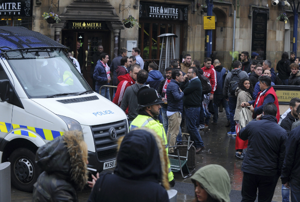 El partido entre el Manchester City y el Sevilla, por la fase de grupos de la Champions League, se ha empañado luego de que aficionados de ambos equipos se enfrentaran en Manchester.