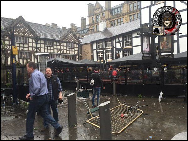 Los seguidores del Manchester City encontraron a los aficionados del Sevilla en un pub en Manchester y comenzaron a atacarlos