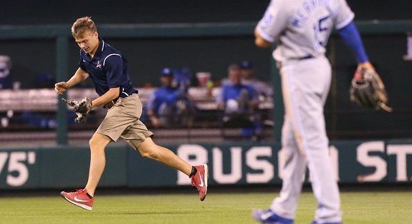 All this cat wanted was a little love from LoCain. Instead, he got escorted off the field. #Royals pic.twitter.com/r2QvHmdaRq