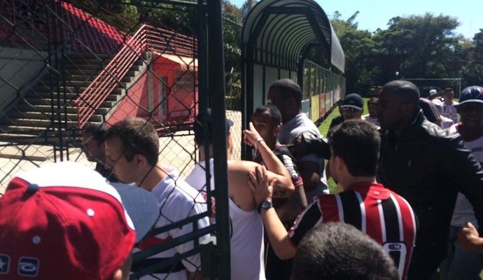 Jugadores como el uruguayo Diego Lugano y Maicon trataron de calmar a los barras bravas en la puerta del centro de entrenamiento del barrio de Barra Funda, según otros videos difundidos a través de redes sociales.