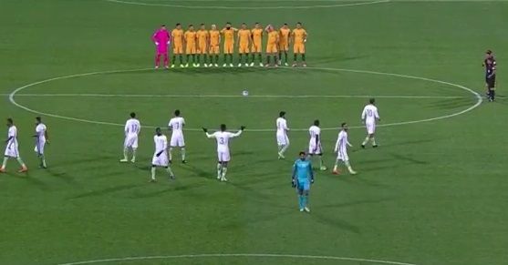 Antes del partido en Adelaide, el equipo australiano se alineó para guardar silencio en honor a los muertos del ataque del sábado pasado, mientras que los árabes no lo hicieron.
