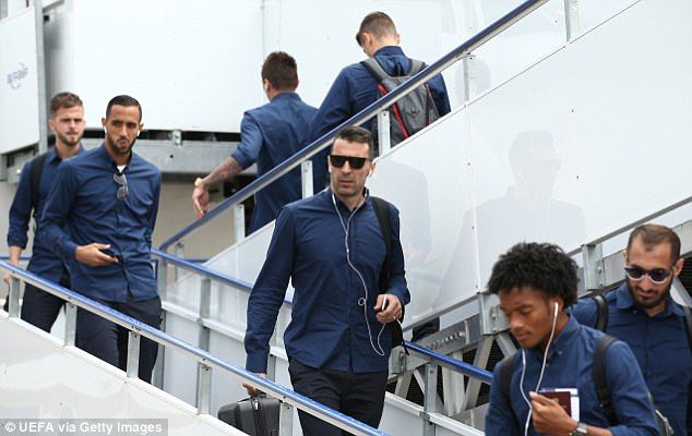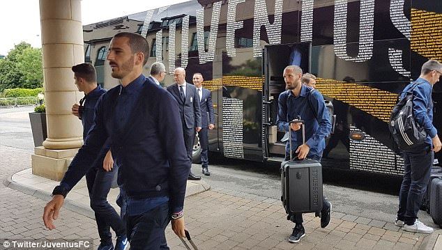 Los futbolistas de la Juventus llegaron vistiendo una camisa de color azul marino y pantalones. Los de Turín se alojarán en el Vale Resort en Hensol, un hotel de cuatro estrellas con todo tipo de comodidades.