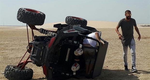 El español se encontraba manejando un buggy entre las dunas del desierto de Qatar, pero perdió el control del vehículo y terminó volcando en la arena. Sin embargo, salió ileso del accidente.