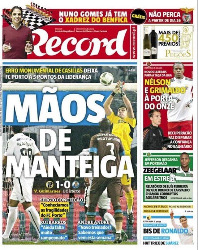 En el encuentro ante el Vitoria Guimaraes, al cual el Porto llegaba con el cartel de favorito, Casillas fue señalado luego de cometer un claro error que le costó el partido a los suyos.