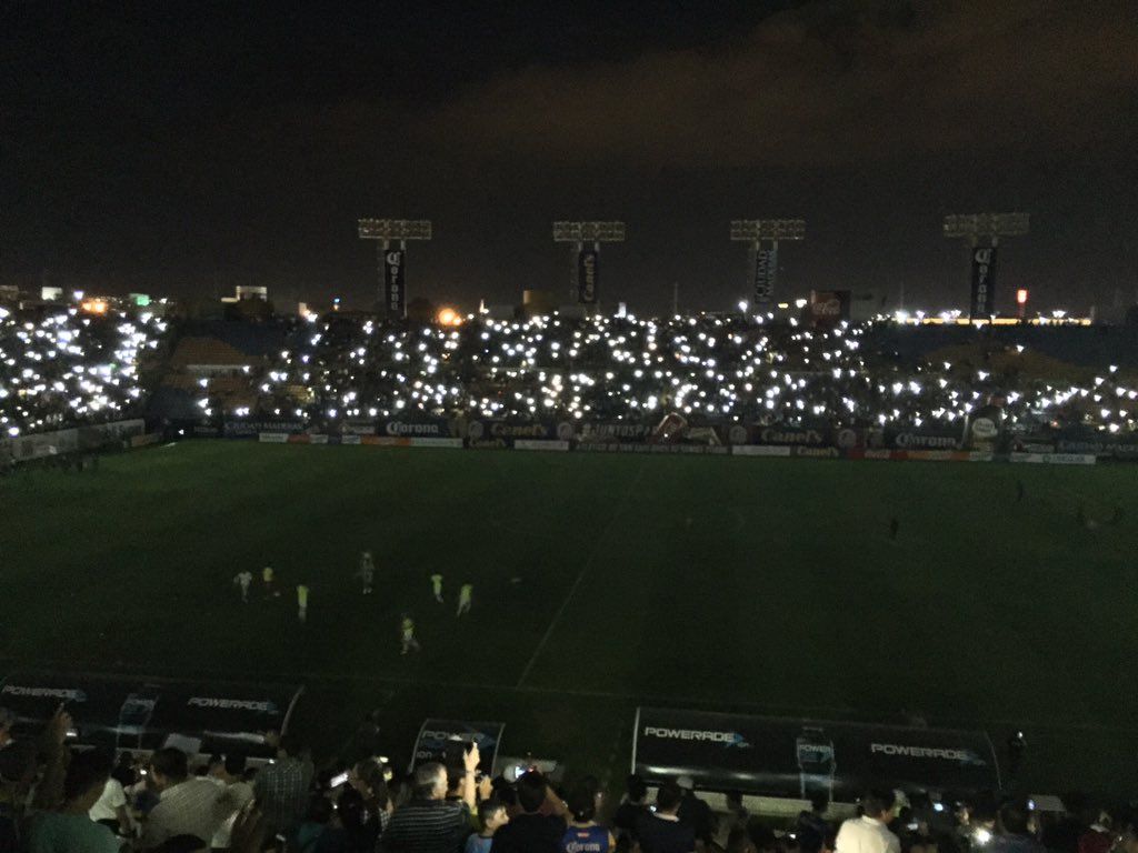 No es la primera vez que ocurre que el estadio donde juega el San Luis presente fallas en el alumbrado. Hoy la afición respondió de una manera muy original.