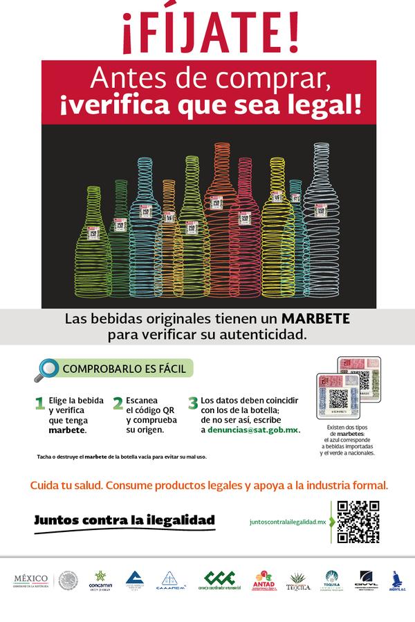 Estas etiquetas permiten a los consumidores escanear un Código QR para comprobar que la bebida sea legal. En caso de que los datos que se obtengan del código no sean iguales a los de la botella, se deberá denunciar esta irregularidad al SAT.