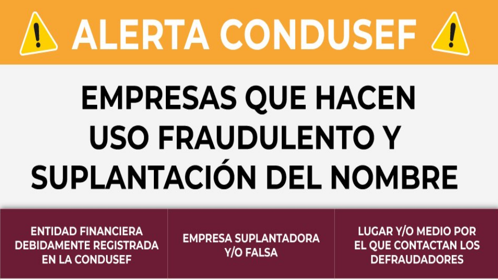 De acuerdo con un comunicado de la Condusef, en las últimas semanas 22 Sociedades Financieras de Objeto Múltiple, Entidades No Reguladas (Sofom, E.N.R.) que están debidamente inscritas, denunciaron el uso fraudulento y suplantación de su nombre comercial e incluso algunos de sus datos fiscales o administrativos, con los cuales defraudan a las personas.