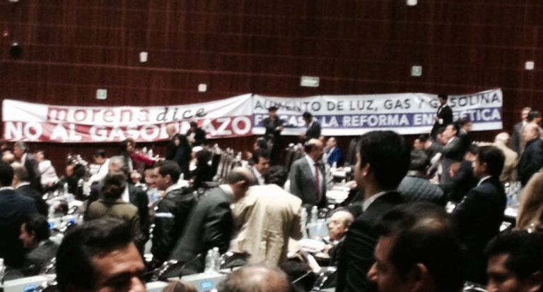Tras la presentación de 116 reservas que buscaban, entre otras cosas, modificar o anular el tema de la liberalización del precio del petróleo y el diésel, así coma lo referente al endeudamiento público, todas fueron desechadas y rechazada su discusión. Sin embargo, la confrontación se reflejó en las mantas y carteles de respuesta y réplica que sacaron a la luz legisladores del Morena y el PRD.