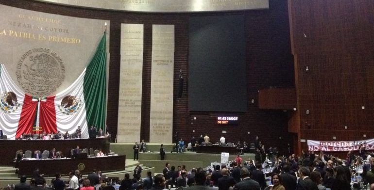 En punto de la 02:01 h, de este viernes 21 de octubre, cuando la fecha límite era el día 20 de este mes, la Cámara de Diputados aprobó en lo particular y sin cambios por 248 votos a favor y 193 en contra, la Ley de Ingresos de la Federación para el Ejercicio Fiscal 2017, que propone un incremento a la propuesta del Ejecutivo en materia del Ingreso federal por más de 51 mil millones de pesos, así como un ajuste al alza del peso frente al dólar de 42 centavos.