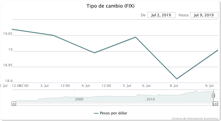Como le informamos en este espacio, el anuncio de los cambios en Hacienda significó que el dólar se cotizara hasta en 19.25 pesos, luego de cerrar la jornada pasada en 18.91 unidades.