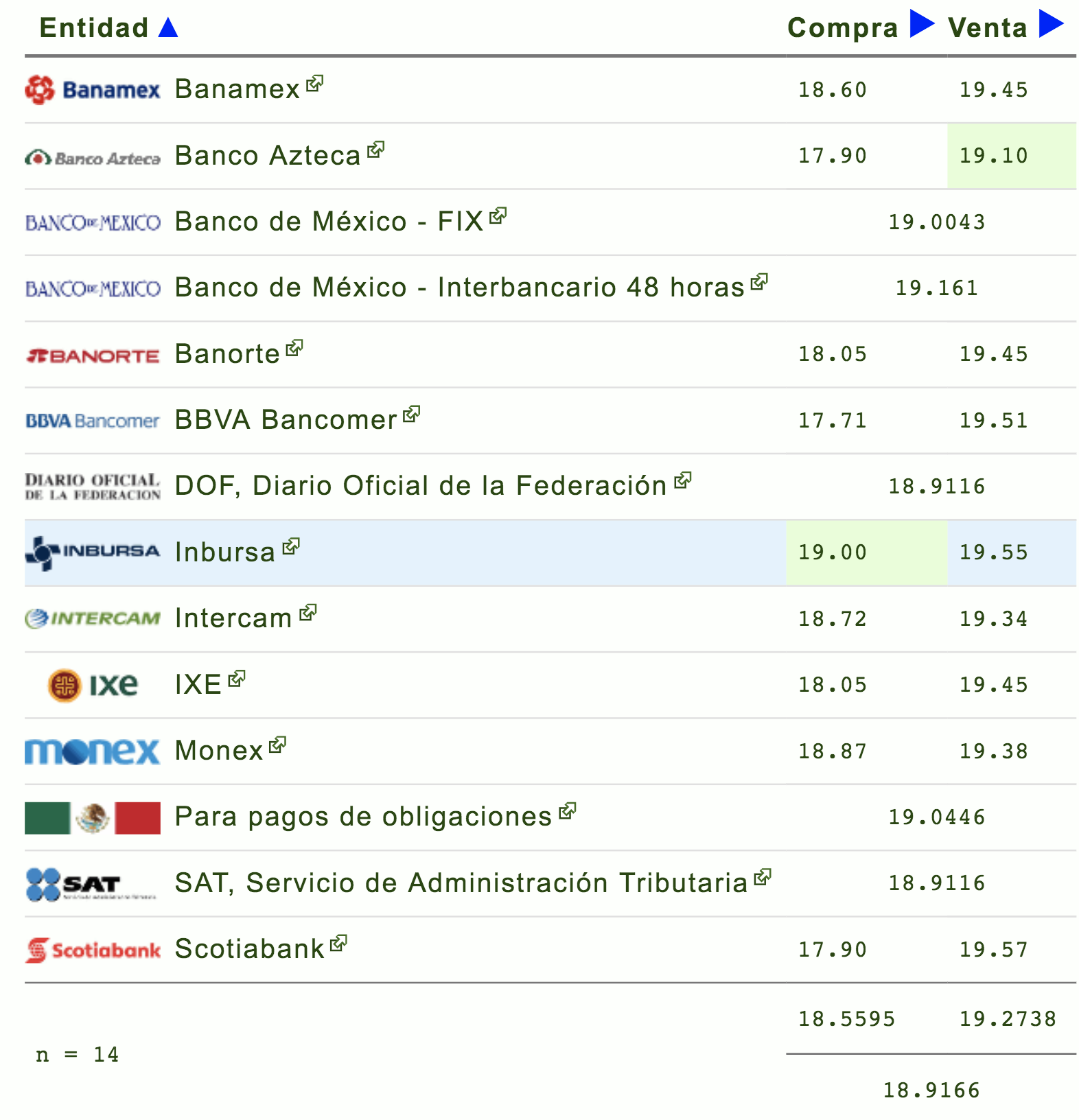 A su vez, el Banco de México fijó en 19.0043 pesos el tipo de cambio para solventar obligaciones denominadas en moneda extranjera pagaderas en la República Mexicana.