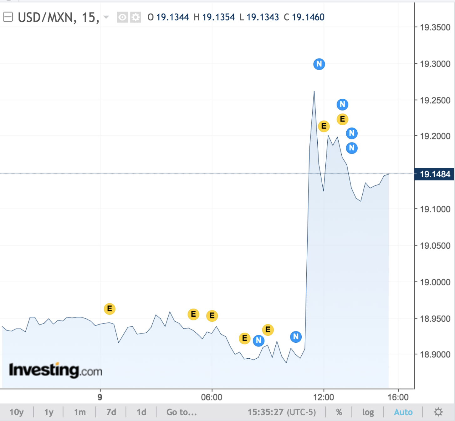 El peso mexicano registra su peor comportamiento desde que Trump amenazó con aplicar aranceles a todas las importaciones provenientes de México