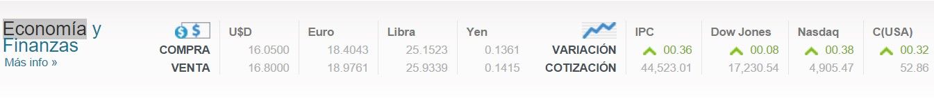 En ventanillas bancarias, el dólar cerró en 16.85 pesos a la venta, 15 centavos más respecto al cierre del viernes. A su vez, el dólar se compró en 15.89 pesos.