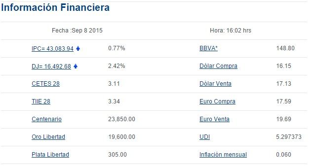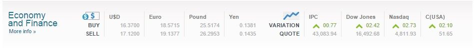 Al cierre de la sesión de este martes, el dólar libre se vendió en un máximo de 17.13 pesos en las ventanillas de los bancos de la Ciudad de México, perdiendo terreno 4 centavos respecto al inicio de la jornada. Además que se compró en un mínimo de 16.05 pesos por unidad.