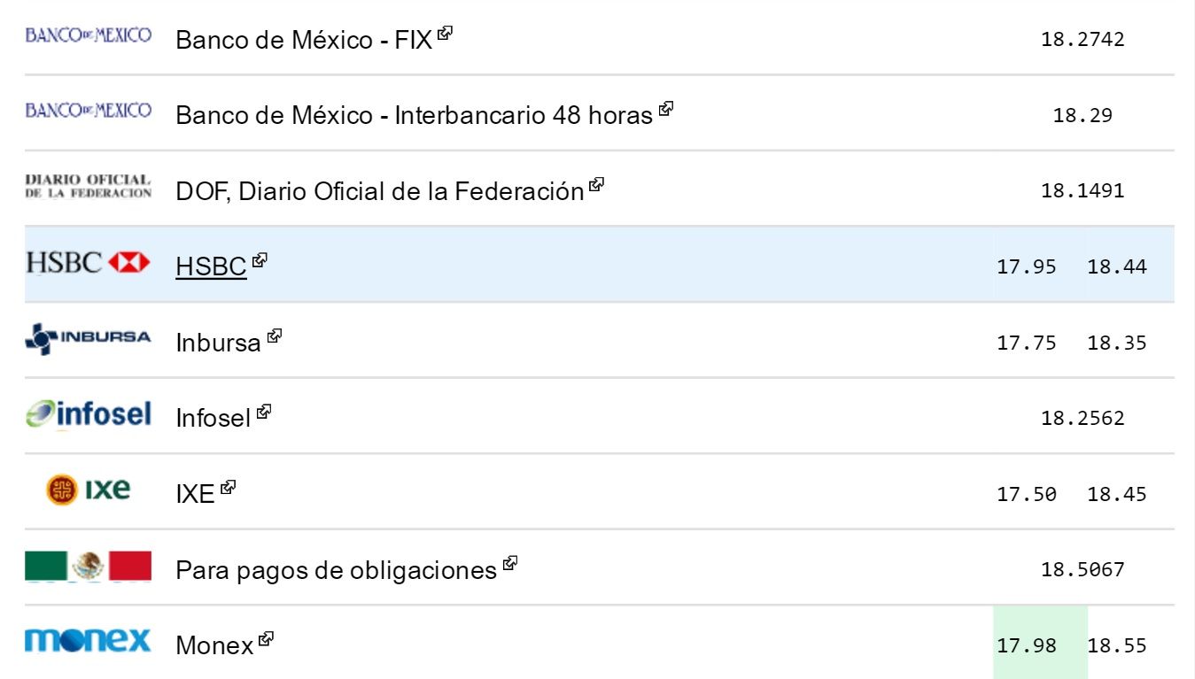 El Banco de México (Banxico) informa que el tipo de cambio para solventar obligaciones denominadas en moneda extranjera pagaderas en el país es de 18.2742 pesos.