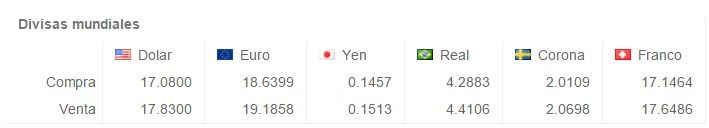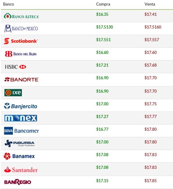 Al cierre de la sesión cambiaria de este miércoles, instituciones bancarias de la Ciudad de México vendieron el dólar libre hasta en 17.85 pesos, 19 centavos más respecto al cierre de la jornada anterior, en tanto que el menor precio a la compra se ubicó en 16.86 pesos.