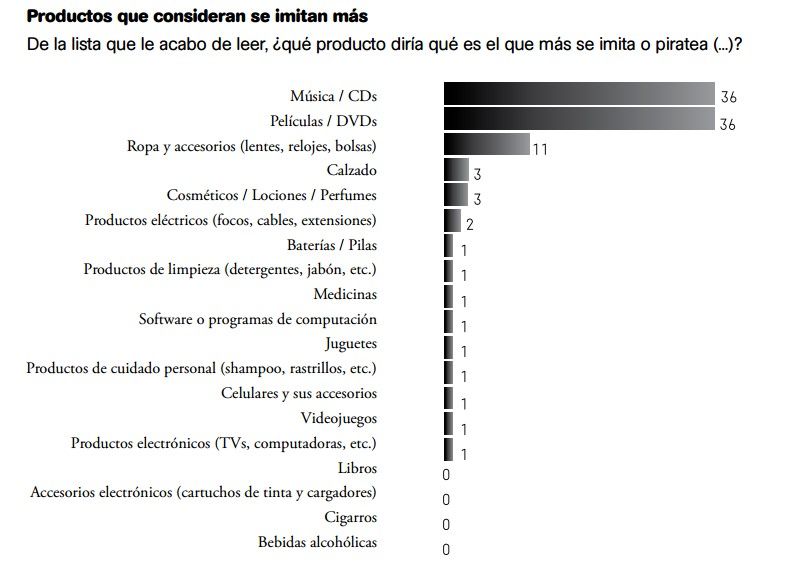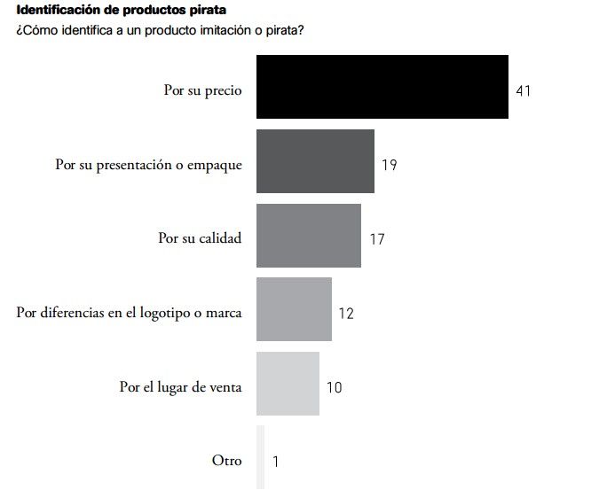 Mientras que un 12 por ciento dijo que identifica la piratería por el logotipo o marca. Un 10 por ciento aseguró que es por el punto de venta.