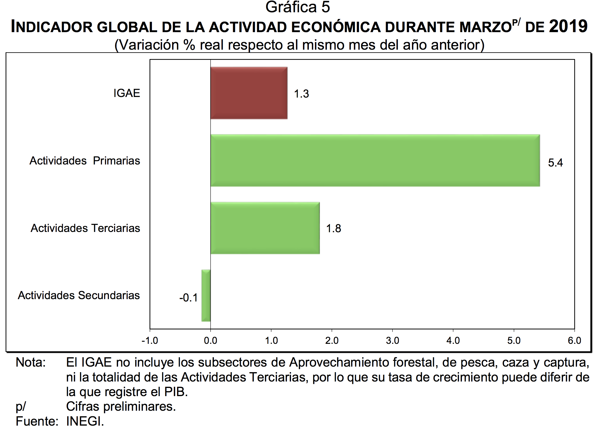 Por otro lado, el INEGI informó que el Indicador Global de la Actividad Económica (IGAE) registró una reducción real de 0.6 por ciento en el mes de referencia con relación a igual mes de 2018.