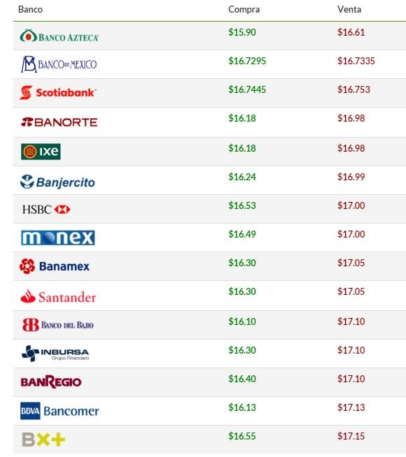 Para este jueves, la institución financiera prevé que el tipo de cambio se cotice entre 16.73 y 17.00 por dólar.