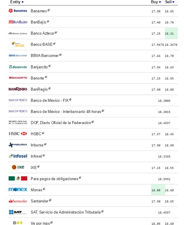 El Banco de México (Banxico) informa que el tipo de cambio para solventar obligaciones denominadas en moneda extranjera pagaderas en la República Mexicana en 18.3006 pesos.