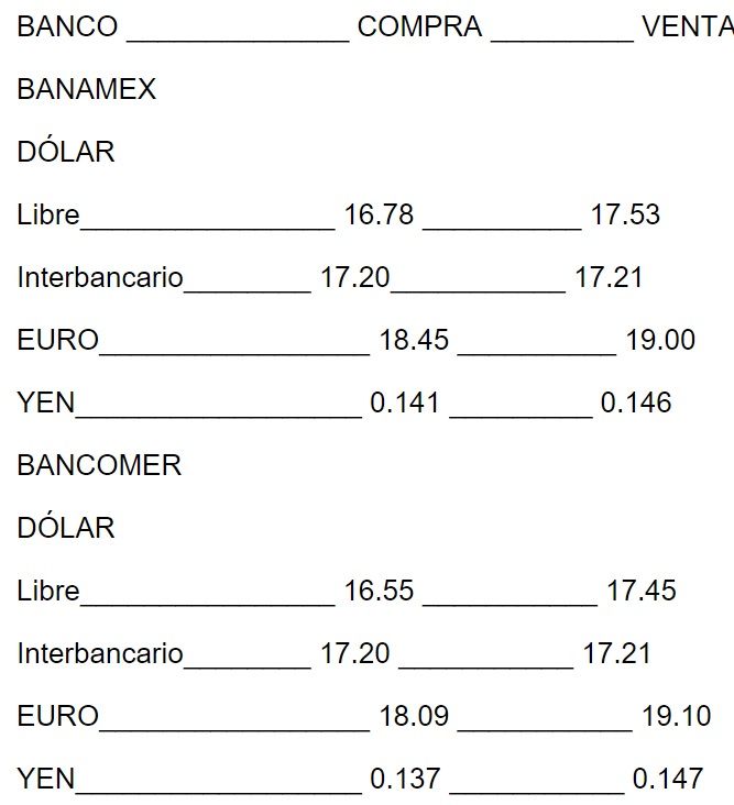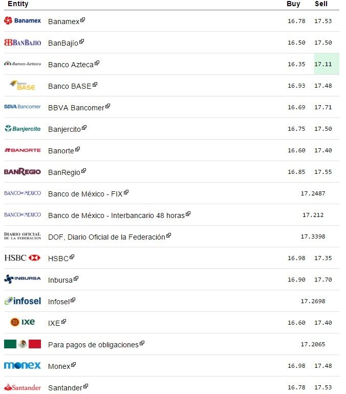 El Banco de México (Banxico) fijó el tipo de cambio para solventar obligaciones en moneda extranjera pagaderas en el país en 17.2487 pesos.