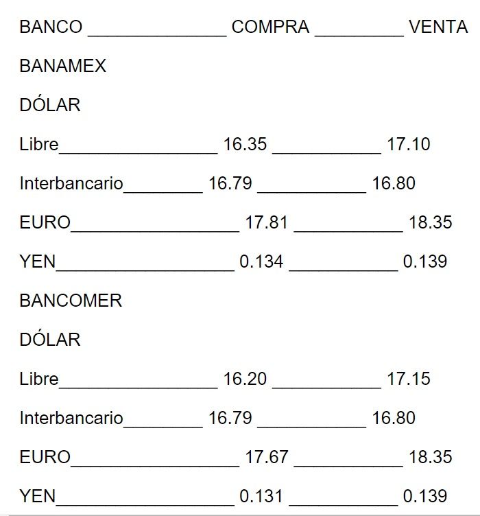 El dólar libre se vendió en bancos en un precio máximo de 17.15 pesos, tres centavos más comparado con el cierre del pasado viernes