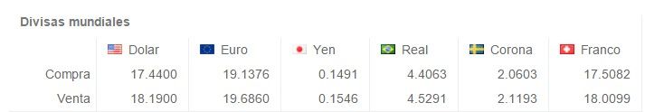 El Banco de México (BANXICO) fijó el tipo de cambio para solventar obligaciones denominadas en moneda extranjera pagaderas en el país en 17.9121 pesos.
