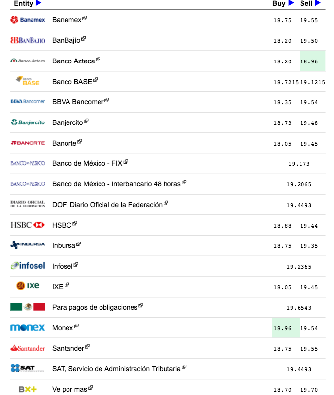 El Banco de México (Banxico) fijó en 19.1730 pesos el tipo de cambio, para solventar obligaciones denominadas en moneda extranjera pagaderas en el país.