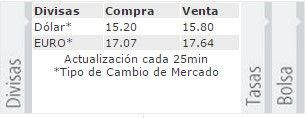 Al cierre de la jornada del mercado cambiario, el dólar libre se vendió en 15.80 pesos, un centavo más respecto a la jornada de ayer. A la compra, la moneda estadounidense se adquirió en un mínimo de 15.10 pesos en ventanillas bancarias del Distrito Federal.