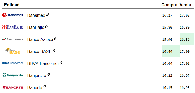 El Banco de México (BANXICO) informó que el tipo de cambio para solventar obligaciones denominadas en moneda extranjera pagaderas en la República Mexicana es de 16.7095 pesos.