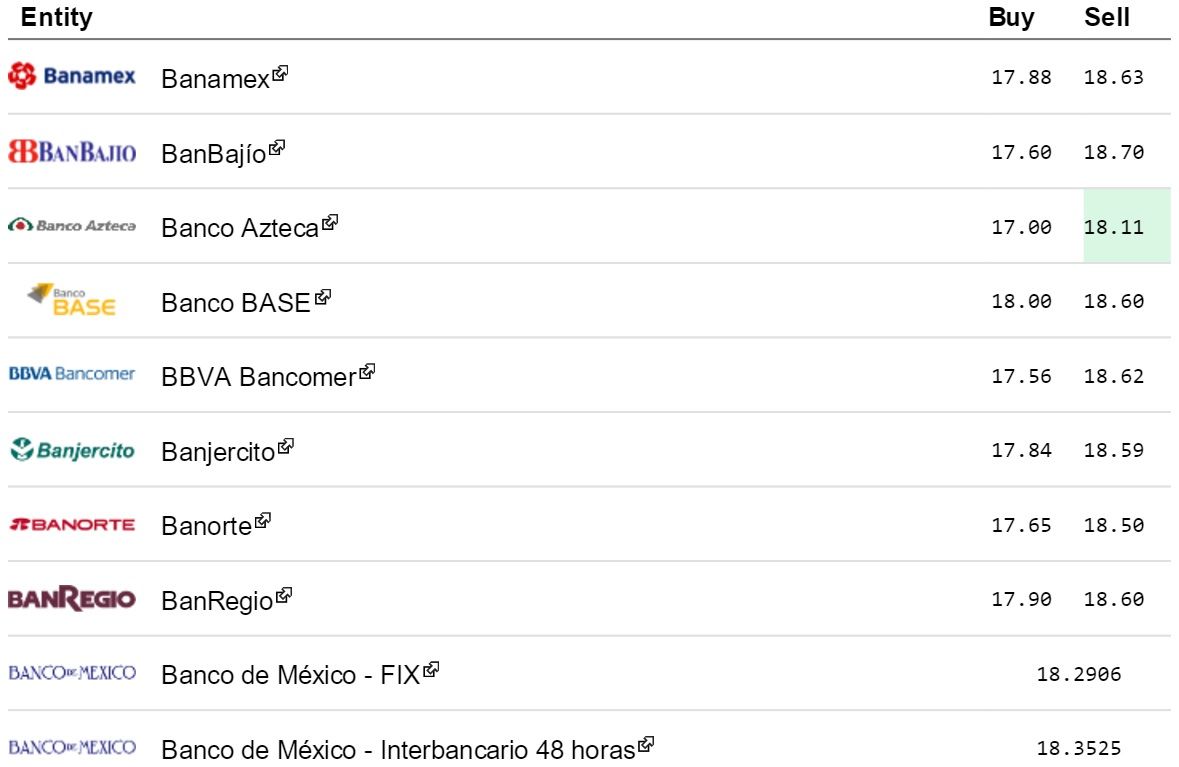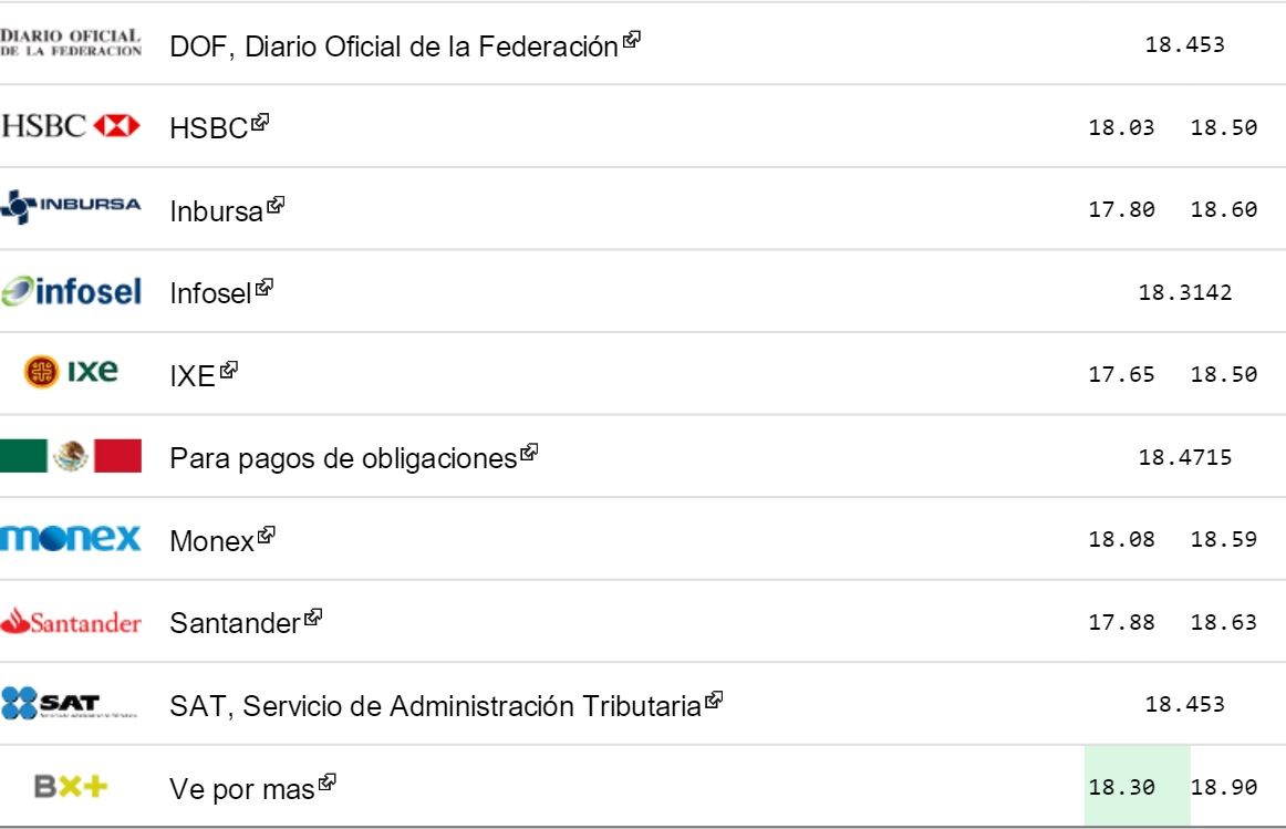 El Banco de México (Banxico) fijó el tipo de cambio para solventar obligaciones en moneda extranjera pagaderas en el país en 18.2906 pesos.