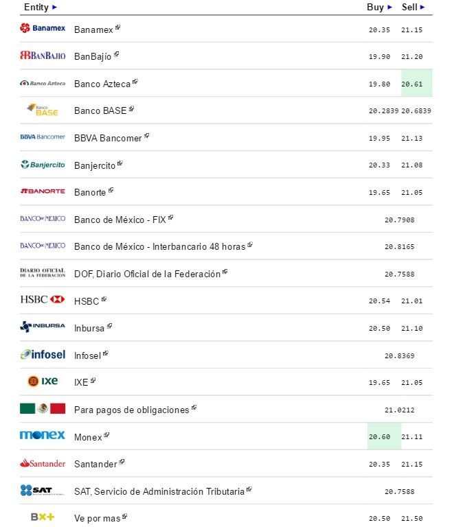El Banco de México (Banxico) fija en 20.7908 pesos el tipo de cambio para solventar obligaciones denominadas en moneda extranjera pagaderas en el país.