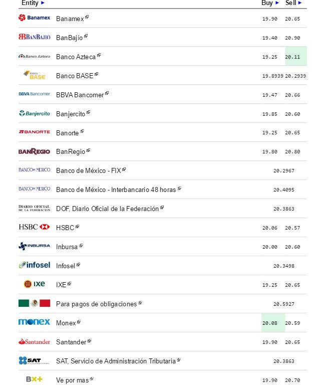 Por su parte, el Banco de México (Banxico) fijó en 20.29 pesos el tipo de cambio para solventar obligaciones denominadas en moneda extranjera pagaderas en el país.