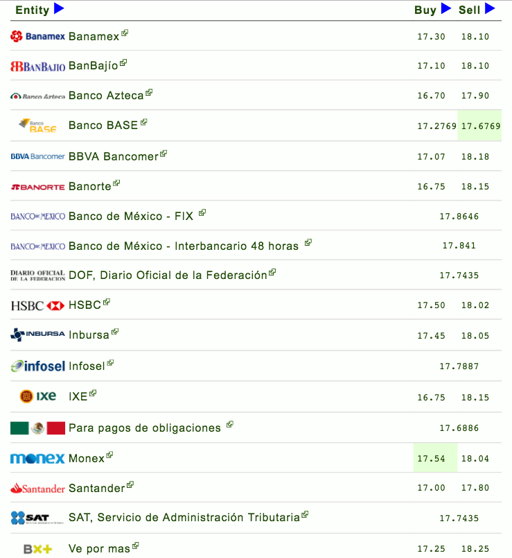 Este último lunes de julio, el dólar estadounidense se vendió hasta en 18.20 pesos, es decir, tres centavos más que el cierre del viernes, y se compró en un precio mínimo de 16.75 pesos en sucursales bancarias de la Ciudad de México.
