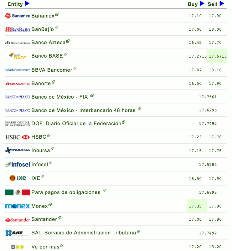 El Banco de México (Banxico) fijó en 17.7561 pesos el tipo de cambio para solventar obligaciones denominadas en moneda extranjera pagaderas en el país.