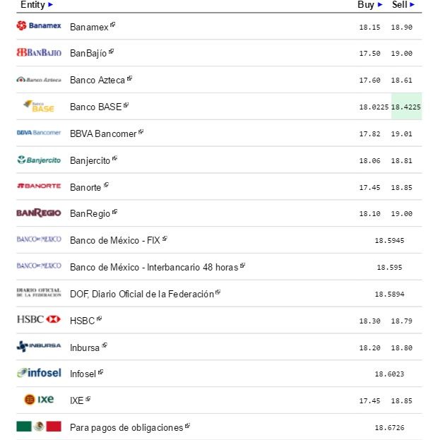 A su vez, la divisa europea se ofreció hasta en 20.74 pesos, lo que representa un retroceso de cuatro centavos respecto a la sesión de ayer, la libra esterlina se vendió en un precio máximo de 23.21 pesos el yen hasta en 0.207 pesos por unidad.