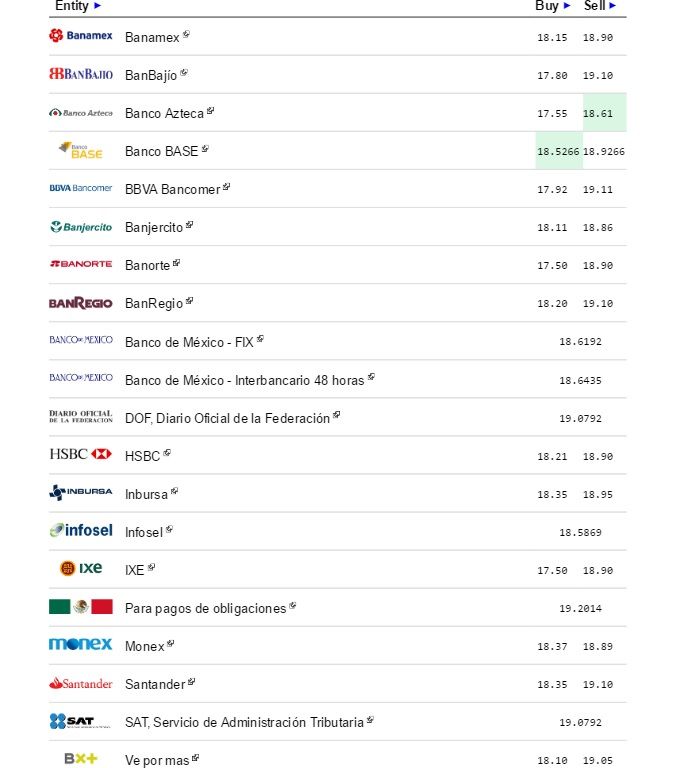 En este contexto, este lunes el dólar libre se vendió en bancos de la capital en un precio máximo de 19.07 pesos, 44 centavos menos frente el cierre del pasado viernes, y se compró en un mínimo de 17.89 pesos.