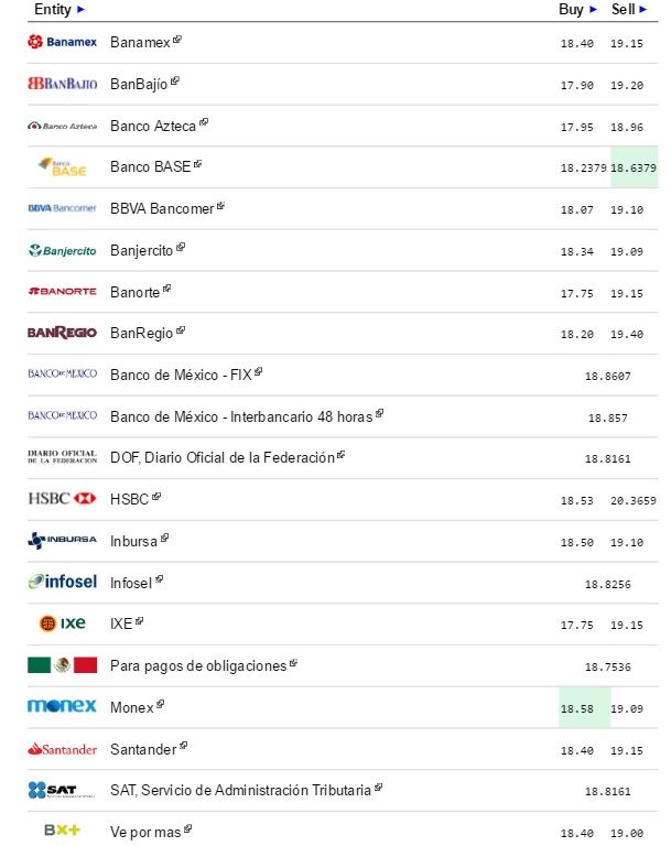 El Banco de México (Banxico) fijó el tipo de cambio para solventar obligaciones denominadas en moneda extranjera en el país en 18.8607 pesos.